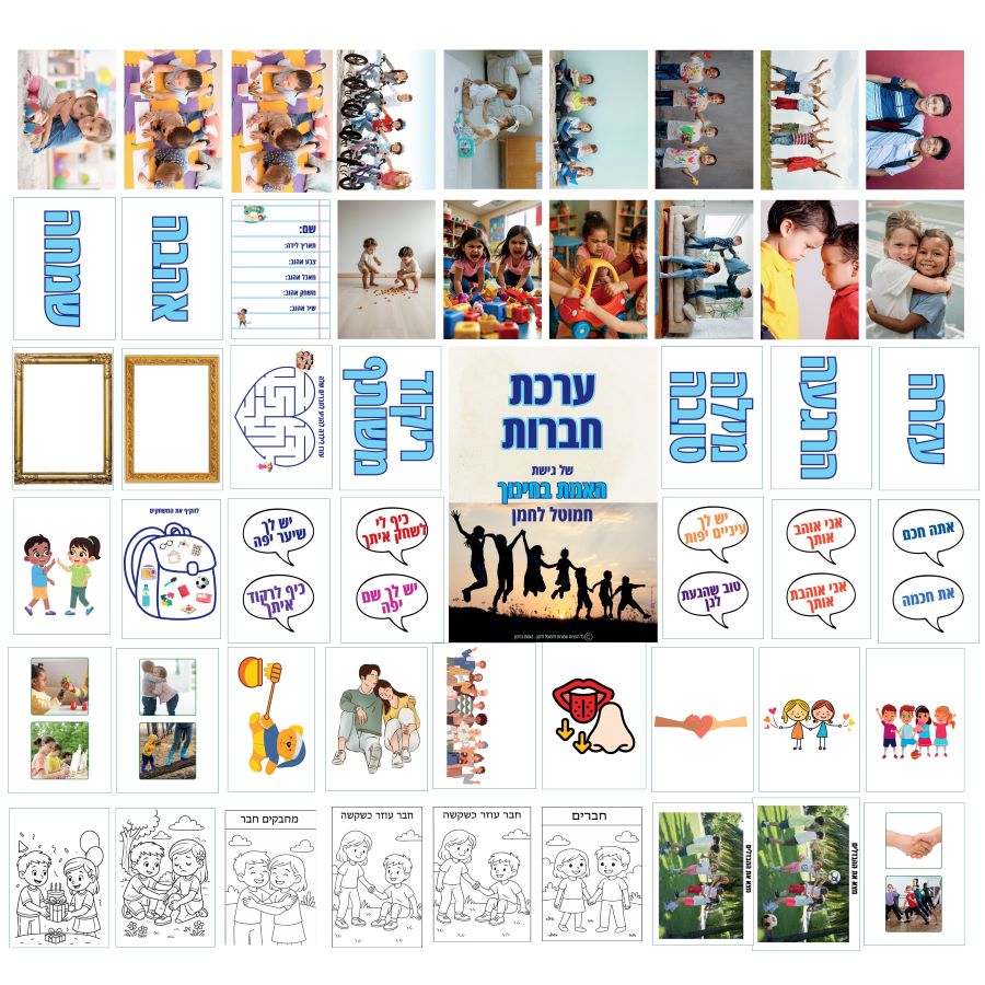 - שישה דפים עם מילים שקשורות לחברות